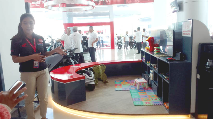 Astra Motor Kalbar berhasil membuat masyarakat terkagum-kagum dengan isi di dalam bangunan megah ini, dari interior nan modern, penataan ruangan yang nyaman hingga area untuk anak-anak pun tersedia, lengkap dengan mainan kesukaan anak serta cemilannya pula. Di salah satu sudut, ada juga kursi pijat untuk relaksasi konsumen.