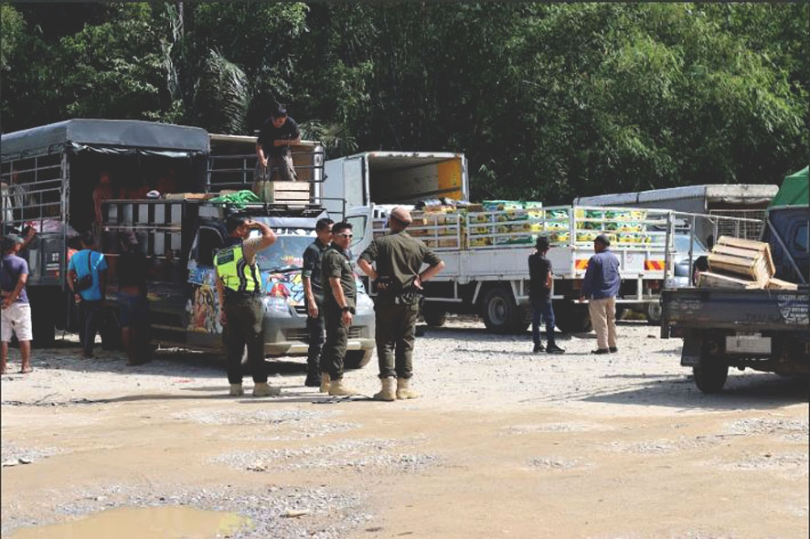 Kegiatan Patroli gabungan Indonesia dan Malaysia di lintas batas kawasan Jagoi Babang - Pasar Serikin perbatasan Indonesia mengamankan puluhan truk yang mengangkut spesies dilindungi. (ist)