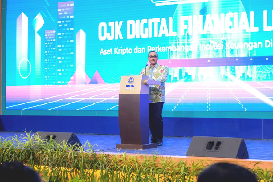 Kepala Eksekutif Pengawas Inovasi Teknologi Sektor Keuangan, Aset Keuangan Digital dan Aset Kripto OJK Hasan Fawzi dalam kegiatan  Digital Financial Literacy di Universitas Muhammadiyah Sumatera Utara (UMSU), Jumat. (ist)
