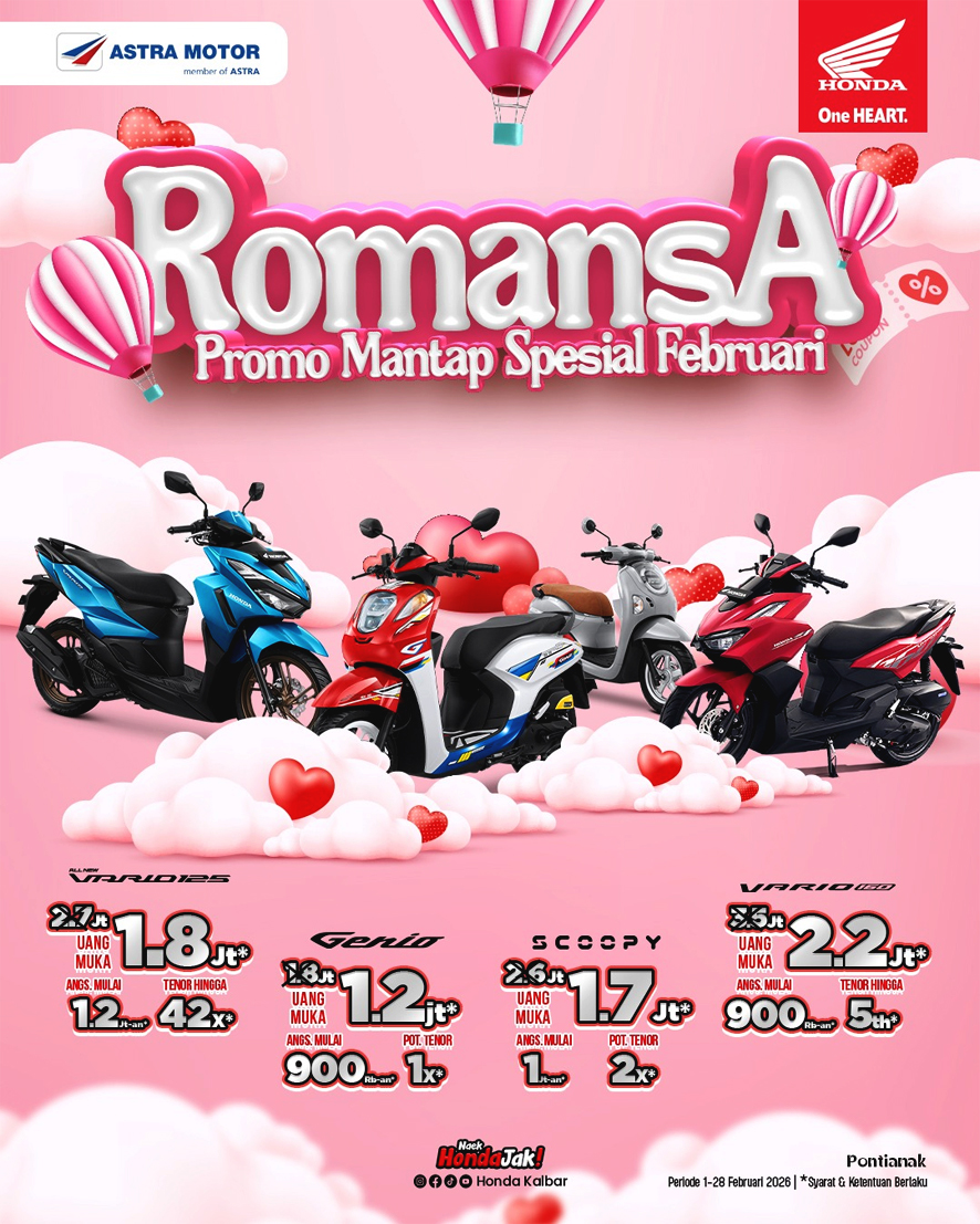 Astra Motor (Asmo) Kalbar sebagai Main Dealer motor Honda untuk wilayah Kalimantan Barat hadir memberikan promo pada setiap pembelian motor Honda secara kredit diseluruh dealer di area Kota Pontianak hingga 28 Februari 2026.