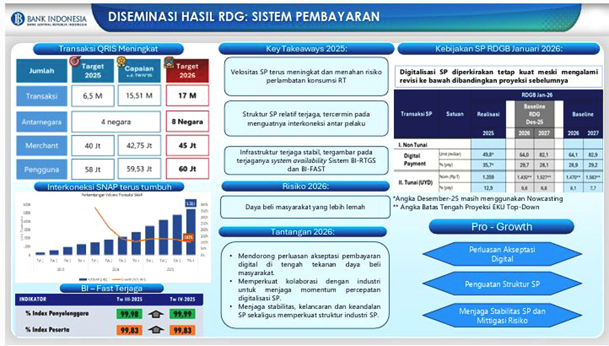 BI melihat prospek 2026, bahwa kredit pada tahun ini masih di bawah optimalnya, sementara corporate secara bertahap mulai meningkatkan ekspansi, khususnya pada SK terkait dengan program pemerintah, namun preferensi penggunaan dana internal masih dinilai tinggi.