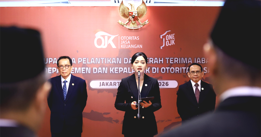 Pejabat Sementara Ketua Dewan Komisioner OJK Friderica Widyasari Dewi di Jakarta, Senin 2 Maret 2026 melantik dan mengambil sumpah Kepala Departemen serta Kepala OJK Daerah, sebagai bagian kesinambungan dan peningkatan kinerja organisasi serta penguatan integritas.