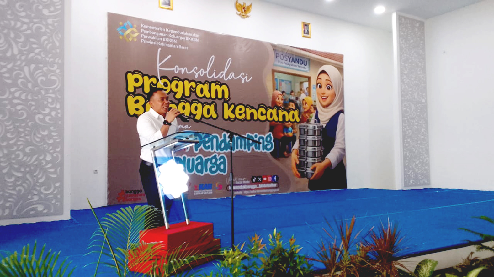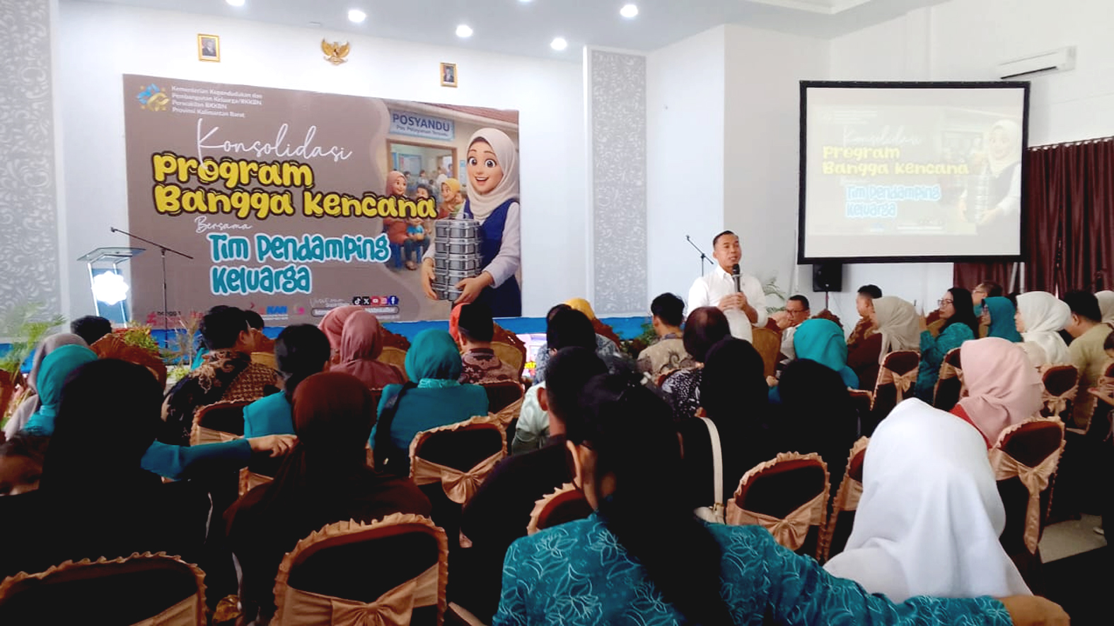 Kegiatan ini dilaksanakan di Aula Serbaguna PMI Provinsi Kalimantan Barat yang dihadiri sebanyak 350 orang peserta terdiri dari tim Pendamping Keluarga, kader, serta berbagai unsur pemangku kepentingan yang terlibat dalam upaya pembangunan keluarga dan percepatan penurunan stunting di daerah.