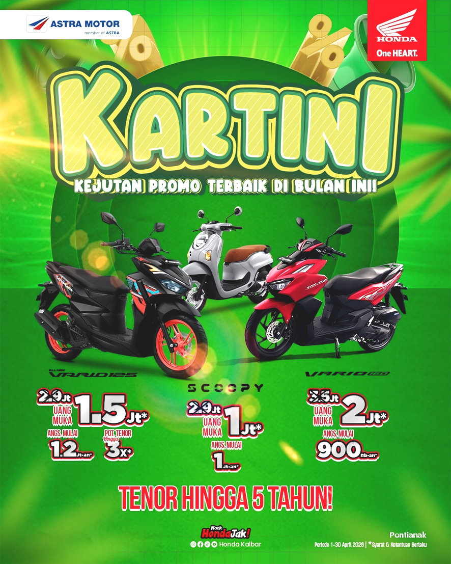 Promo yang bertajuk “KARTINI” ini berlangsung dari tanggal 1-30 April 2026 dengan berbagai pilihan motor yang dapat dipilih oleh konsumen setia motor Honda.
